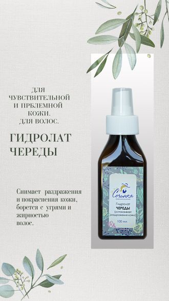 Состав: 100% гидролат череды, не содержит спирта и консервантов.