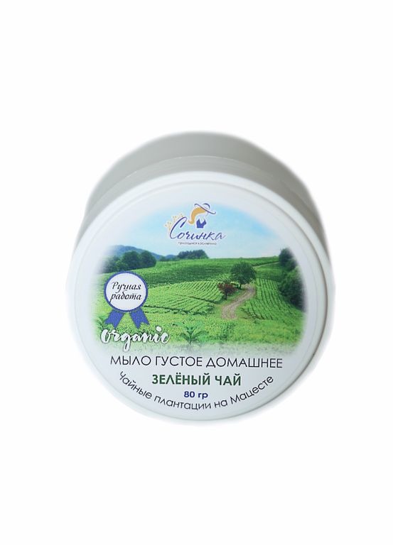 Мыло густое домашнее для тела и волос. Удобно пользоваться в бане и душе. Из натуральных кокосового, миндального и касторового масел. После применения кожа остается увлажненной, не испытывает сухости и стянутости. Имеет приятный аромат зеленого чая, который усиливается при взаимодействии с горячей водой. Зеленый чай является известным тонизирующим и антиоксидантным средством, питает и подтягивает кожу.
