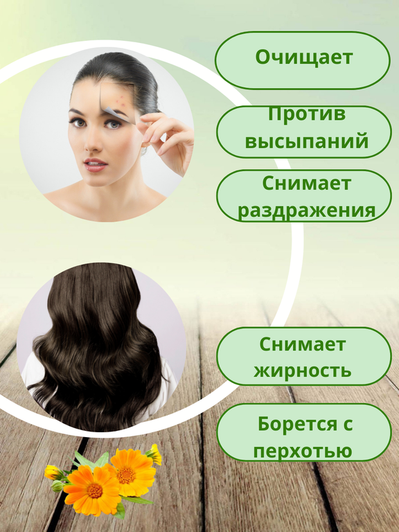 Для волос рекомендуется при перхоти, уменьшает жирность, придает объем волосам.