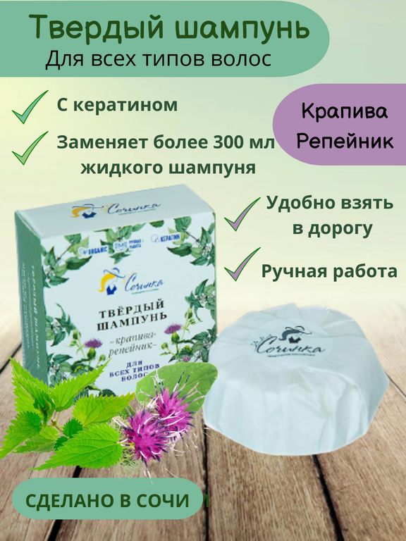 Шампунь твердый КРАПИВА-РЕПЕЙНИК для нормальных волос.