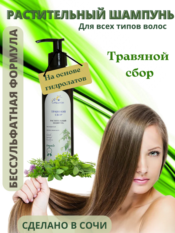 Для приготовления растительного бессульфатного шампуня "Травяной сбор" мы использовали растения Черноморского побережья. Крапива придаёт блеск и красоту, является стимулятором роста волос, календула оздоравливает кожу головы, инжир увлажняет. Репейное масло укрепляет волосяные луковицы.
