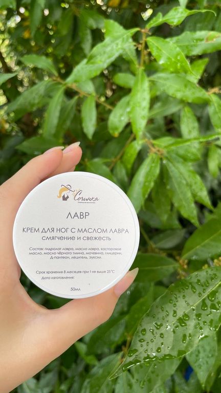 Крем для ног Лавр смягчает и дезодорирует кожу ног, создает ощущение свежести и бархатистости. Крем плотный, с ароматом лавровых листьев, зеленоватого цвета. Без отдушек. Мочевина и глецирин придают крему выраженные увлажняющие свойства.